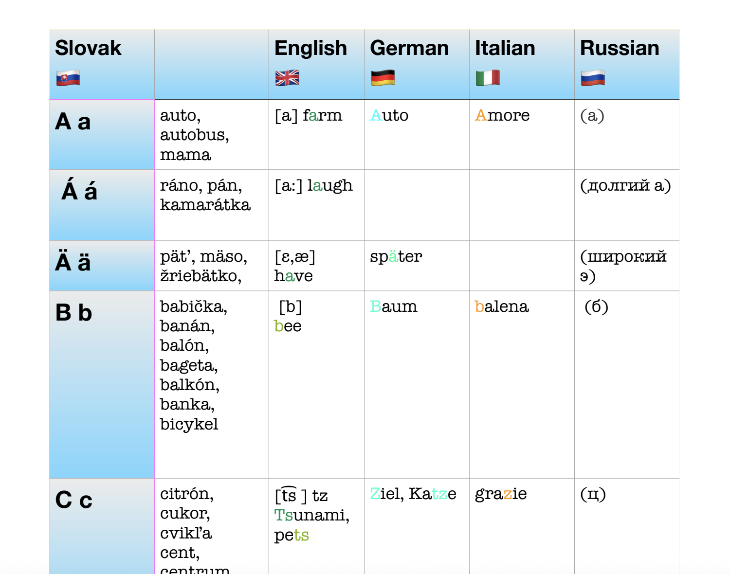 Slovenská abeceda pre cudzincov na porovnanie