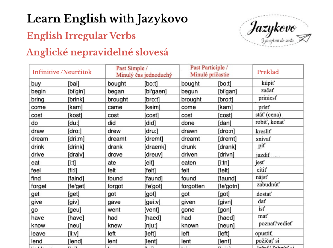 Anglické nepravidelné slovesá ZADARMO